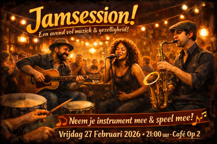 Houd je van muziek maken kom dan op 27 februari naar de jam session bij Cafe op 2. Speel samen of...